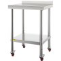 VEVOR roestvrijstalen voorbereidingstafel met spatwand, gladde rand en wielremmen.