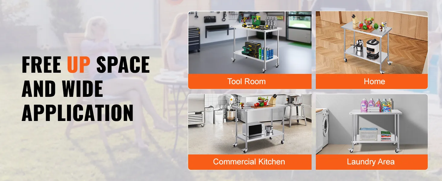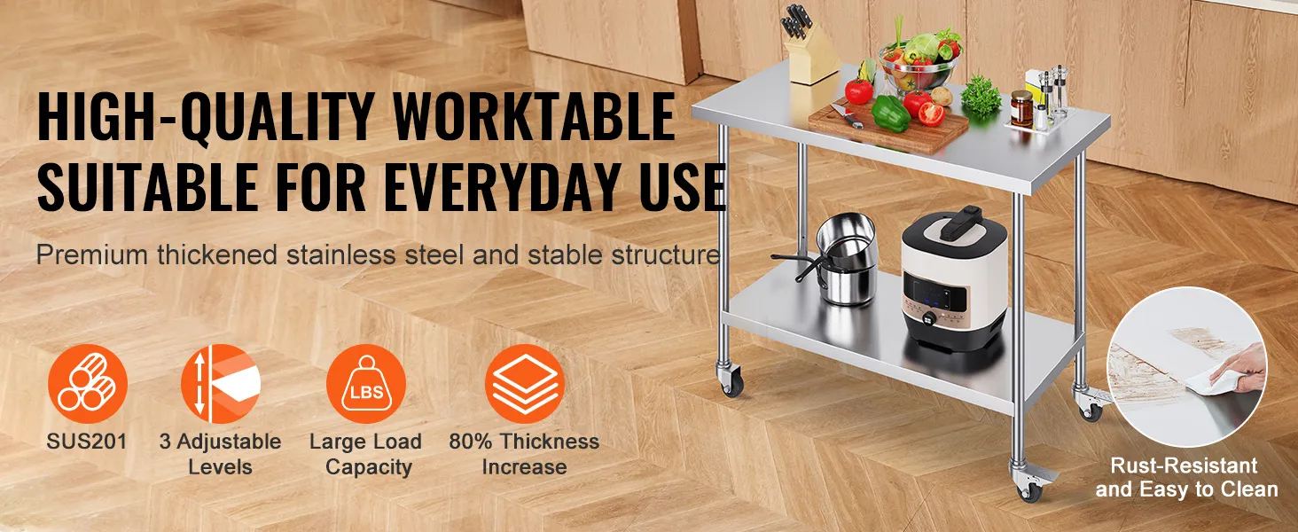 VEVOR Stainless Steel Work Tables with Stylish Design