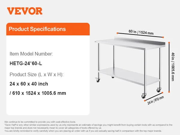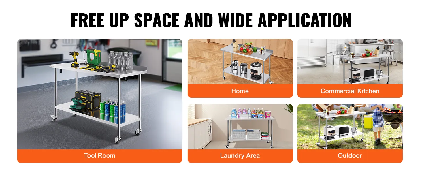 VEVOR Stainless Steel Work Tables with Stylish Design