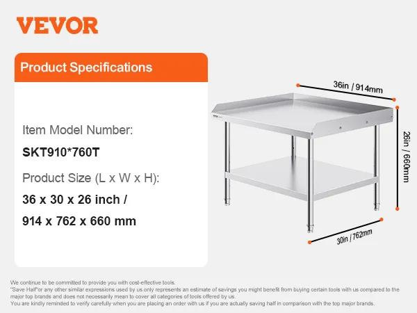 De tafel biedt voldoende werk- en opbergruimte. De afmetingen van 30 x 36 inch bieden een ruim werkoppervlak. De tafel heeft ook een backslash-lade met een onderste plank voor extra opbergruimte. Dit is handig om keukengereedschap en ingrediënten binnen handbereik te houden. Ruim ontwerp Het zorgt ervoor dat u voldoende ruimte hebt voor verschillende taken. Functionaliteit van de tafel: De onderste plank verbetert de functionaliteit van deze tafel. Hij is dus geschikt voor voedselbereiding, koken en andere keukenactiviteiten. Een ruim en functioneel ontwerp maakt het een onschatbare aanwinst in elke keuken.