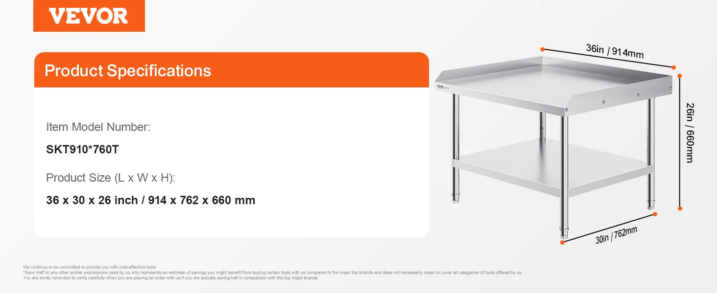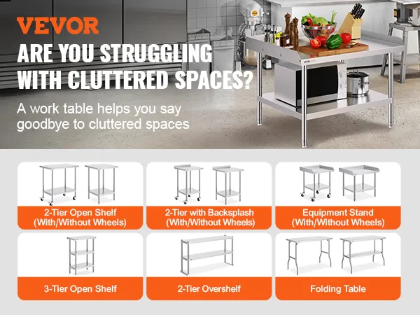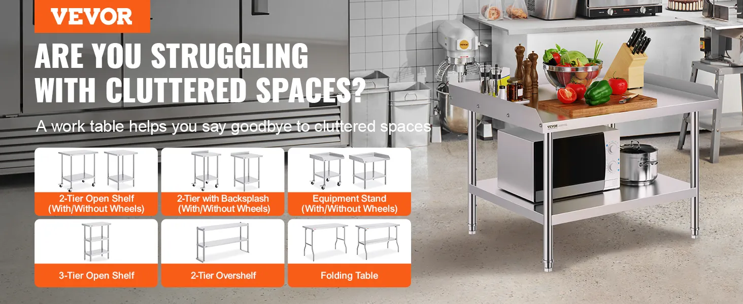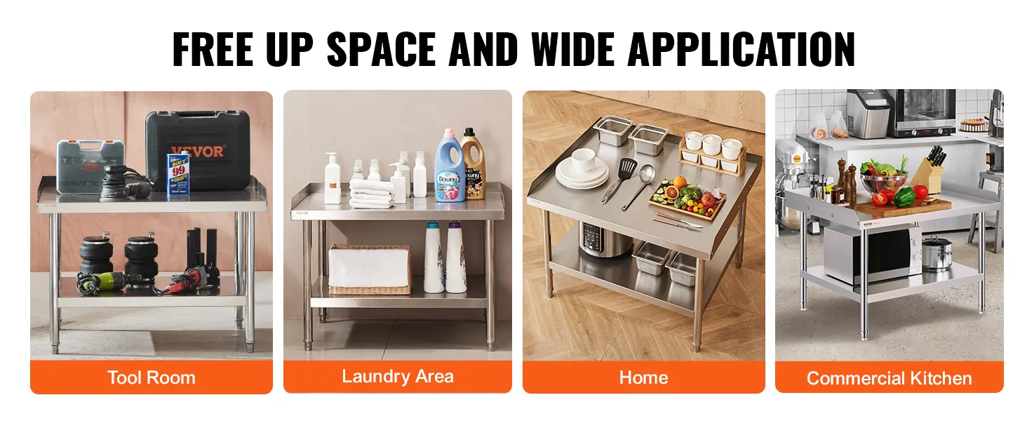 HANDIGE MATEN: Verkrijgbaar in verschillende maten om perfect aan uw keukenbehoeften te voldoen. Of het nu gaat om commerciële keukens, renovaties of uw garage-inrichting, onze professionele roestvrijstalen werktafels zijn ontworpen met het oog op duurzaamheid en betrouwbaarheid. Wij raden u aan om vóór de aankoop uw ruimte op te meten.