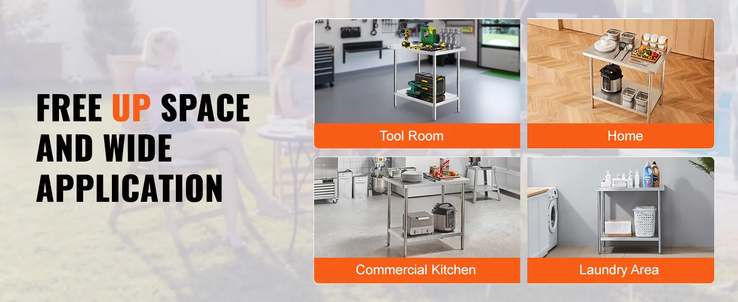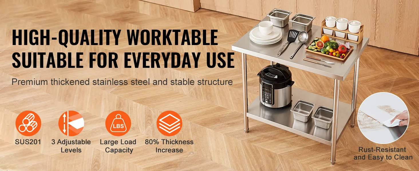VEVOR Stainless Steel Work Tables with Stylish Design