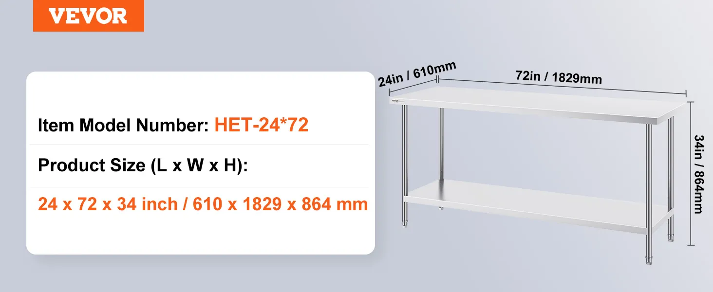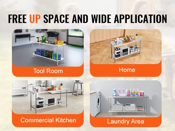 Practical Sizes: Available in various sizes to perfectly fit your kitchen needs. Whether for commercial kitchens, home renovations, or your garage setup, our professional-grade stainless steel work table series is designed for lasting performance and reliability. We recommend measuring your space before purchasing.