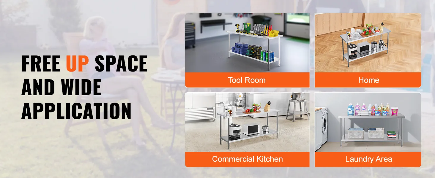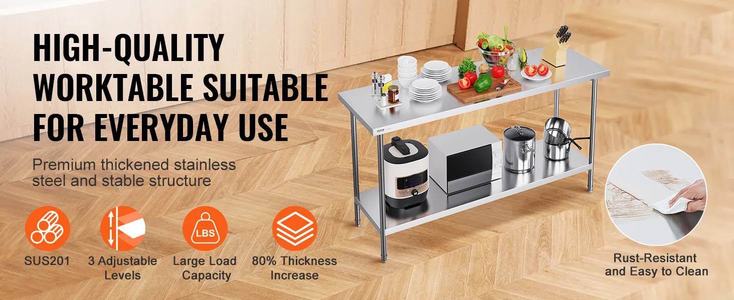 VEVOR Stainless Steel Work Tables with Stylish Design