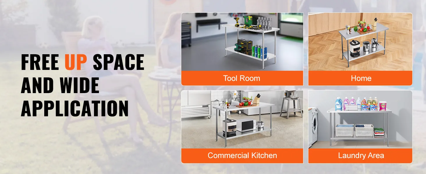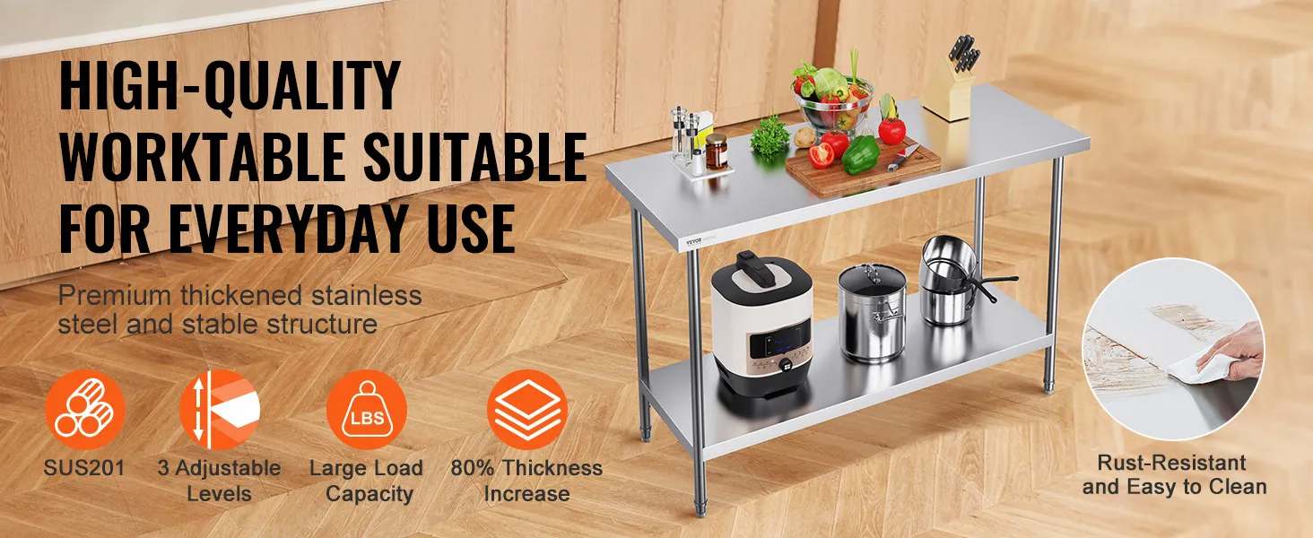 VEVOR Stainless Steel Work Tables with Stylish Design