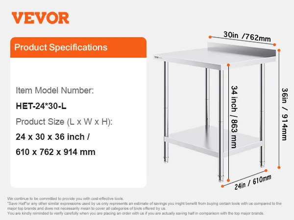 VEVOR Stainless Steel Work Tables with Stylish Design