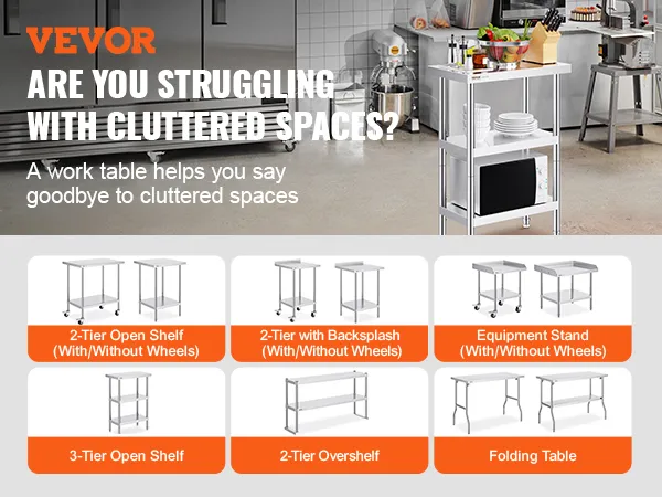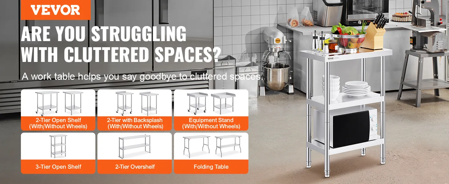 Het monteren van deze verstelbare werktafel onder de plank is eenvoudig. Het wordt geleverd met eenvoudige instructies. De meeste mensen vinden het gemakkelijk om het in elkaar te zetten zonder gereedschap. Het ontwerp van de roestvrijstalen werktafel zorgt voor een snelle en eenvoudige installatie. Onderhoud is ook probleemloos. Het roestvrijstalen oppervlak is glad en moeiteloos schoon te maken. Een simpele veeg is alles wat nodig is om het er als nieuw uit te laten zien. Eenvoudige montage en onderhoud vergroten het gemak. U besteedt minder tijd aan het opzetten en meer tijd aan het gebruiken ervan. Dit maakt het een praktische keuze voor drukke keukens en werkruimtes.