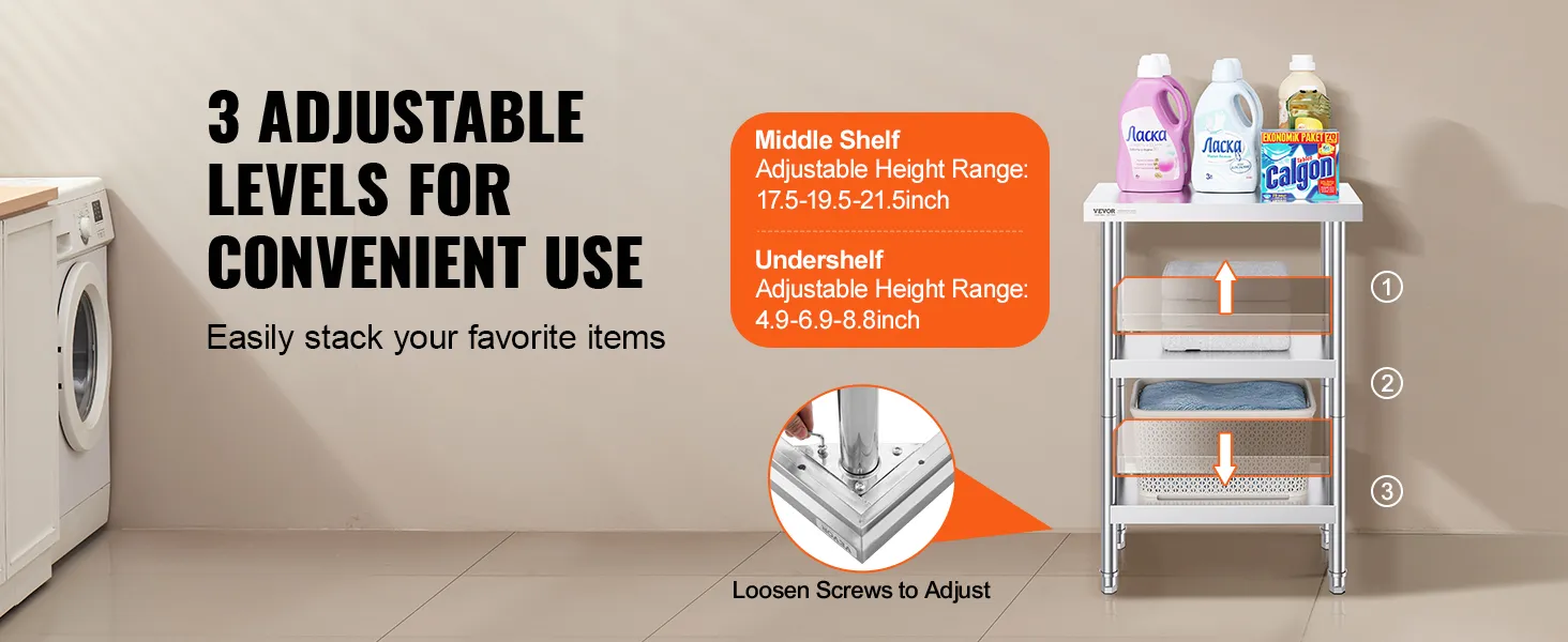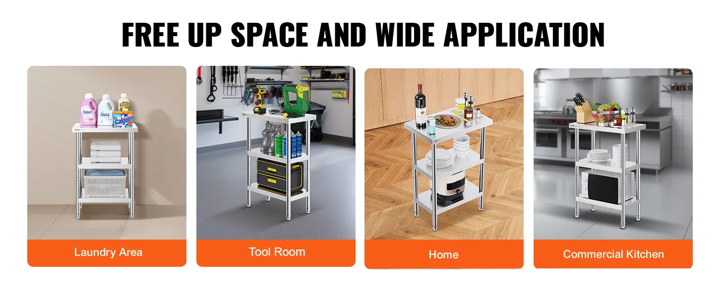VEVOR Stainless Steel Work Tables with Stylish Design