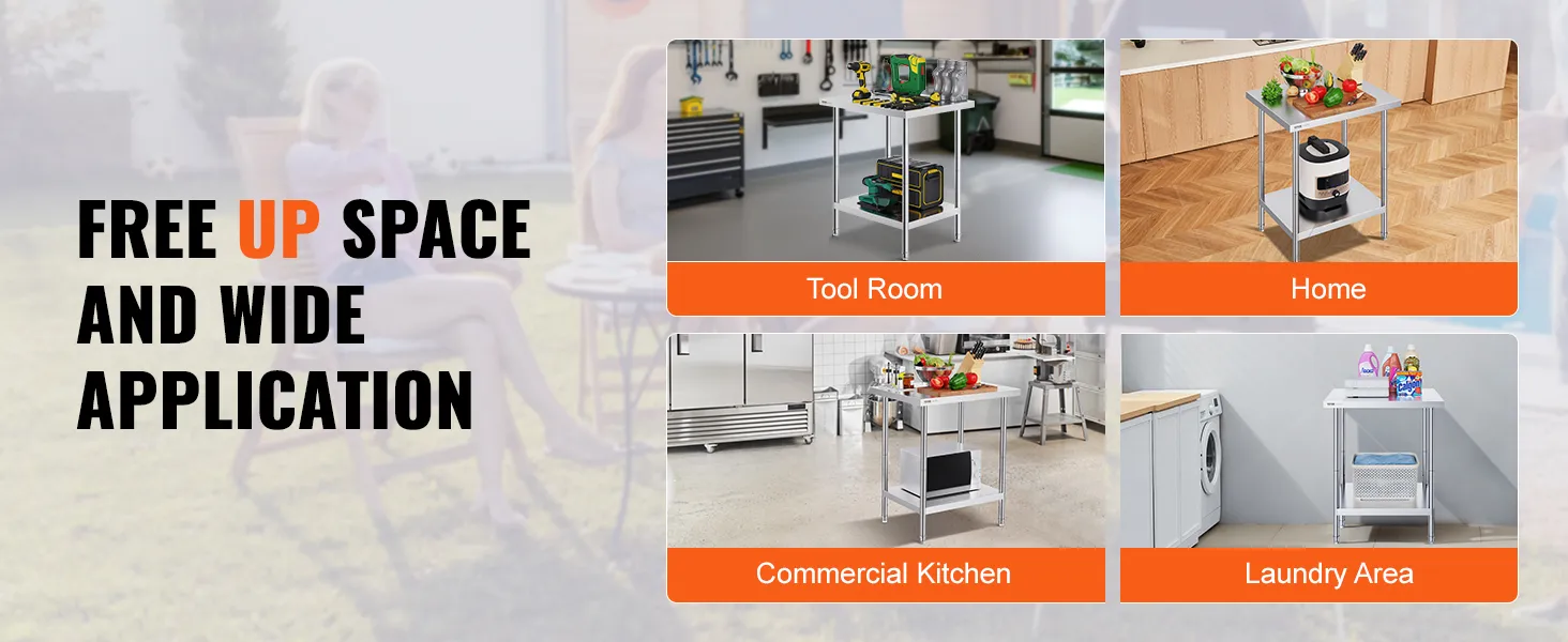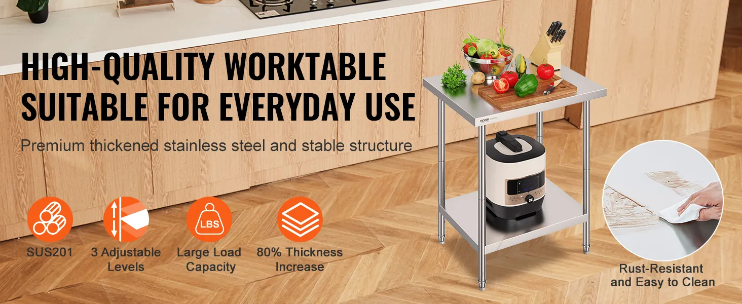 VEVOR Stainless Steel Work Tables with Stylish Design