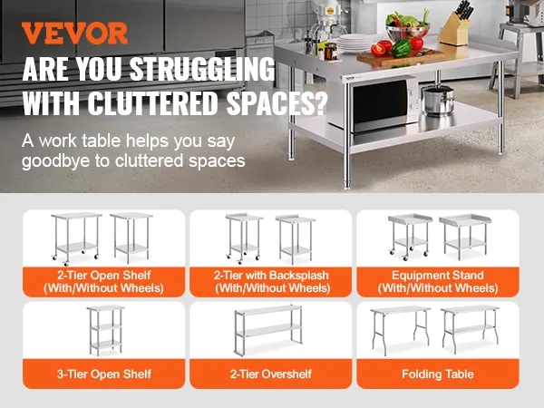 De VEVOR roestvrijstalen werktafel is perfect voor professioneel gebruik. Het ontwerp voldoet aan de eisen van commerciële keukens. De grote omvang van de tafel biedt voldoende werkruimte. Dit is ideaal voor drukke keukenruimtes waar meerdere taken tegelijk worden uitgevoerd. Het roestvrijstalen materiaal is eenvoudig schoon te maken en te onderhouden. Dit is belangrijk in voedselbereidingsruimtes waar hygiëne van het grootste belang is. Bovendien heeft de tafel een spatwand om morsen te voorkomen, wat de functionaliteit in verschillende omgevingen verbetert.