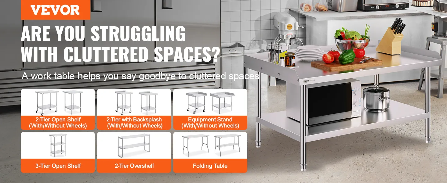 HANDIGE MATEN: Verkrijgbaar in verschillende maten om perfect aan uw keukenbehoeften te voldoen. Of het nu gaat om commerciële keukens, renovaties of uw garage-inrichting, onze professionele roestvrijstalen werktafels zijn ontworpen met het oog op duurzaamheid en betrouwbaarheid. Wij raden u aan om vóór de aankoop uw ruimte op te meten.