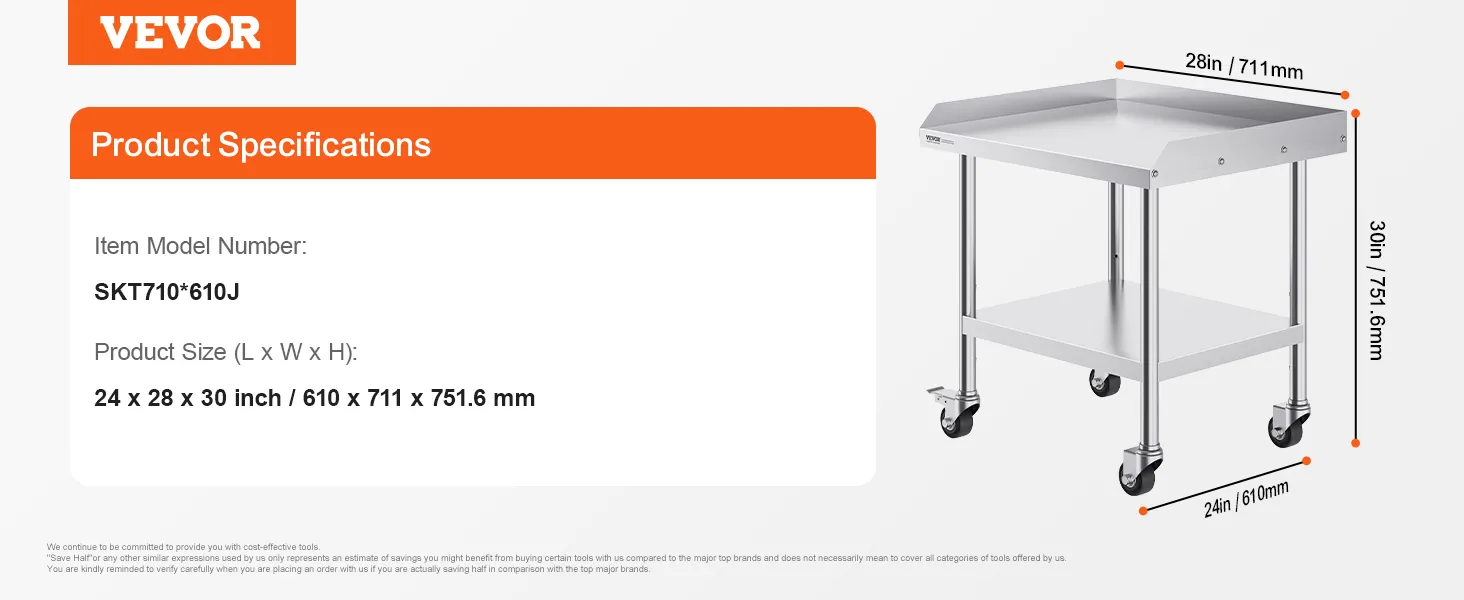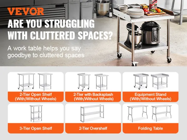 HANDIGE MATEN: Verkrijgbaar in verschillende maten om perfect aan uw keukenbehoeften te voldoen. Of het nu gaat om commerciële keukens, renovaties of uw garage-inrichting, onze professionele roestvrijstalen werktafels zijn ontworpen met het oog op duurzaamheid en betrouwbaarheid. Wij raden u aan om vóór de aankoop uw ruimte op te meten.