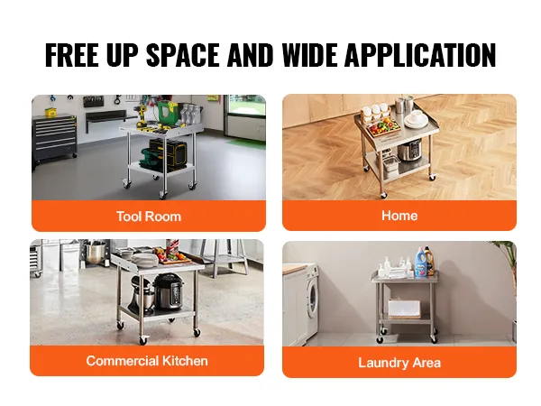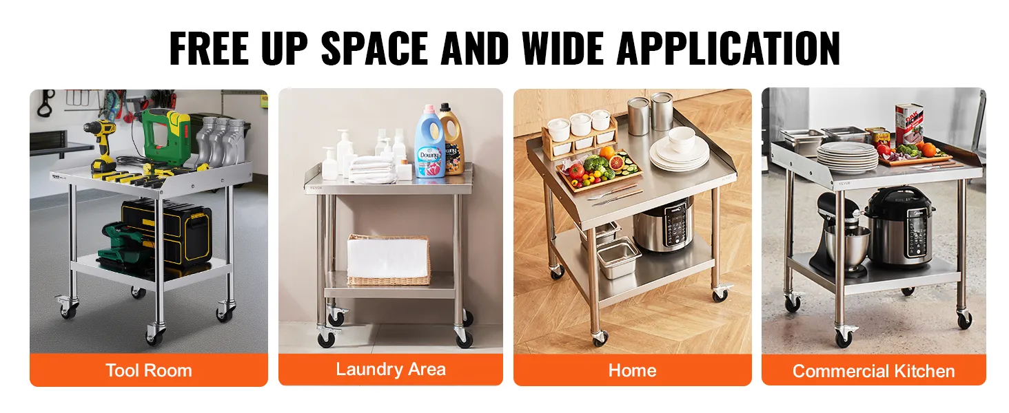 Het is een veelzijdige werktafel. Hij kan in verschillende ruimtes en toepassingen worden gebruikt. U kunt hem in uw keuken, tuin of op het terras zetten. Dit maakt hem geschikt voor commerciële omgevingen zoals restaurants. Het roestvrijstalen materiaal van de tafel past perfect in elke omgeving. Uw werkruimte is geschikt voor verschillende taken. U kunt hem gebruiken voor het bereiden van voedsel, tuinieren of het opbergen van artikelen. Maar wat kan de tafel nog meer doen? Nou, deze veelzijdigheid maakt hem een uitstekende aanvulling op elke kamer!