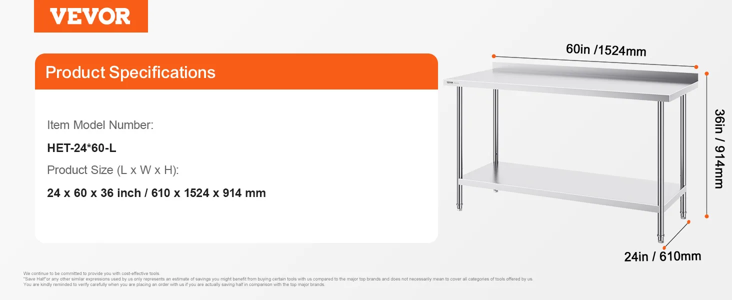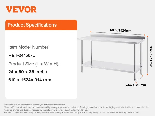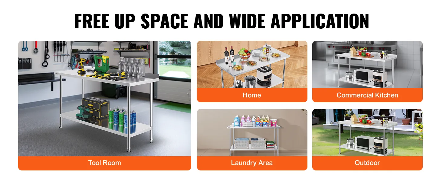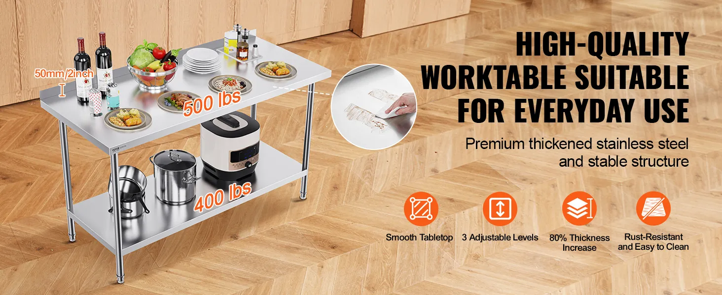 VEVOR Stainless Steel Work Tables with Stylish Design