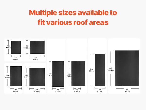 Eenvoudige dakbedekking: Met afmetingen van 6,096 x 6,096 m (20 x 20 voet) bedekt dit dakbedekkingsmembraan eenvoudig verschillende dakafmetingen, afhankelijk van uw behoeften