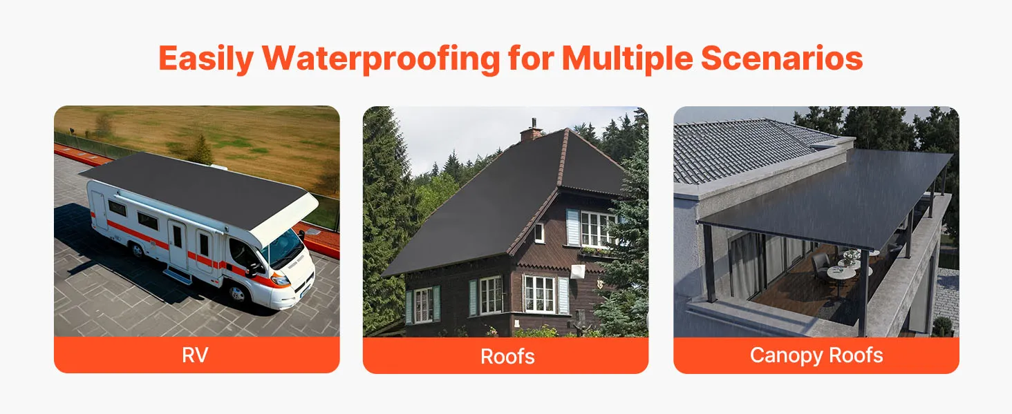 Waterdicht en verouderingsbestendig: de dakbedekking is gemaakt van hoogwaardig EPDM-rubber en biedt uitstekende waterdichte, verouderingsbestendige en isolerende eigenschappen. Hierdoor vervormt of veroudert deze niet, zelfs niet onder invloed van zonlicht.