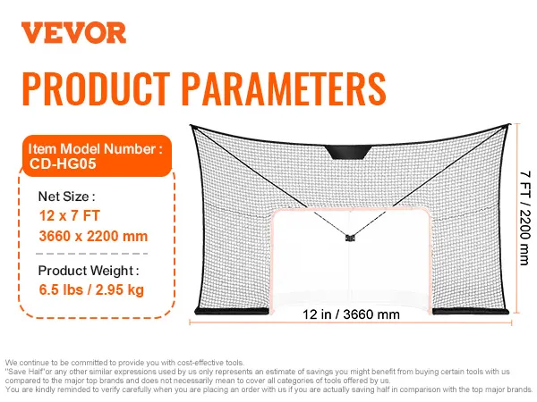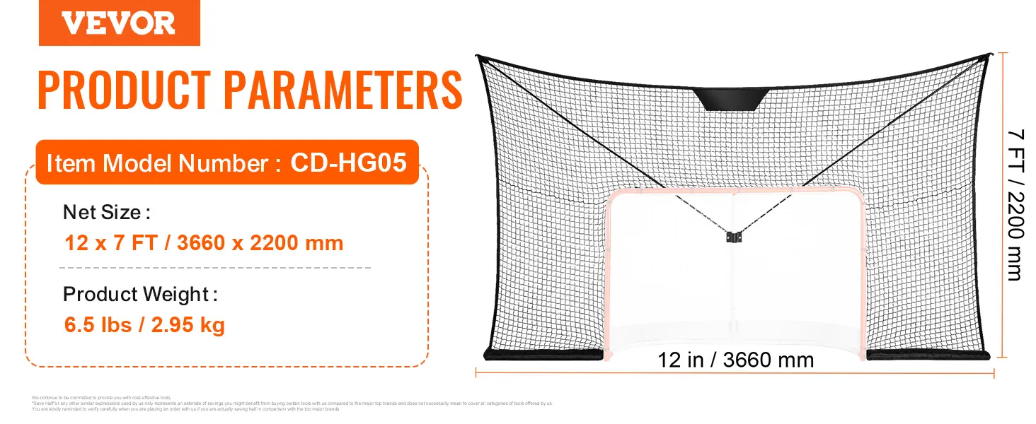 Het hockeytrainingsnet van 366 x 220 cm vangt alle gemiste schoten op, zodat je geen tijd meer hoeft te verspillen aan het achtervolgen van de ballen. Het beschermt ook garagedeuren en is een geweldig hulpmiddel voor het verbeteren van de nauwkeurigheid, schietprestaties en uithoudingsvermogen.