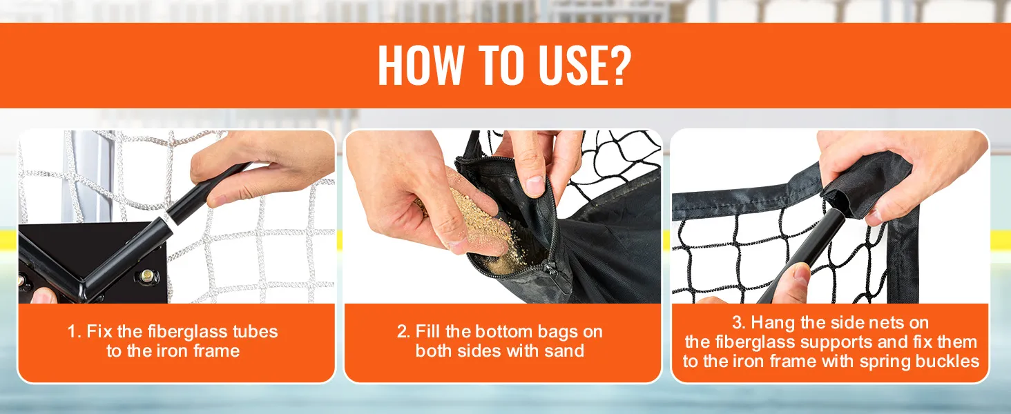 Robuuste, weerbestendige zandzakken kunnen de stabiliteit van het eenvoudig op te zetten hockeynet vergroten, zodat je minder hoeft te bukken bij het oppakken van de ballen en daardoor effectiever kunt trainen.