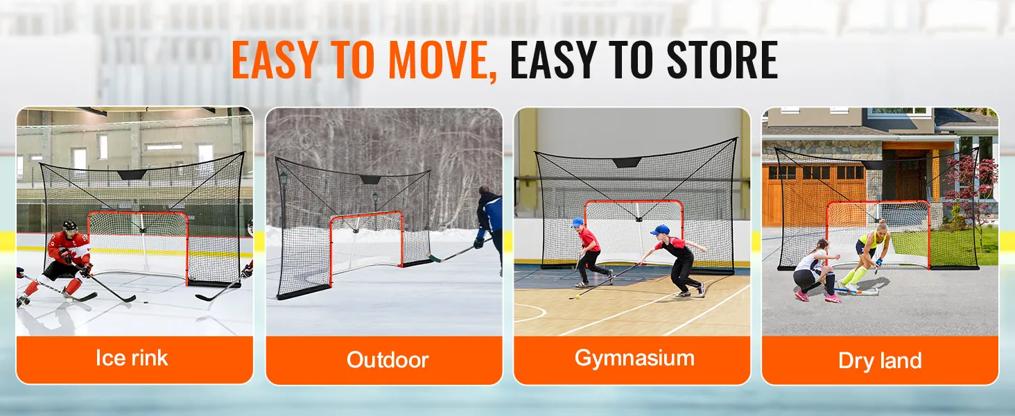 Het hockeynet is afneembaar, wat hem erg handig maakt voor wedstrijden. Het kan worden gebruikt in sporthallen, ijsbanen, droge ruimtes of buiten en is een ideaal cadeau voor elke hockeyfan die zijn spel wil verbeteren.