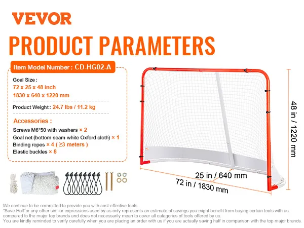 Onze hockeydoelenset is afneembaar, waardoor hij praktisch is voor wedstrijden. Het kan worden gebruikt in sporthallen, ijsbanen, droge ruimtes of buiten en is een ideaal cadeau voor elke hockeyfan die zijn spel wil verbeteren.