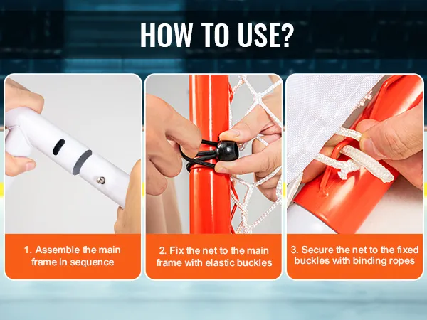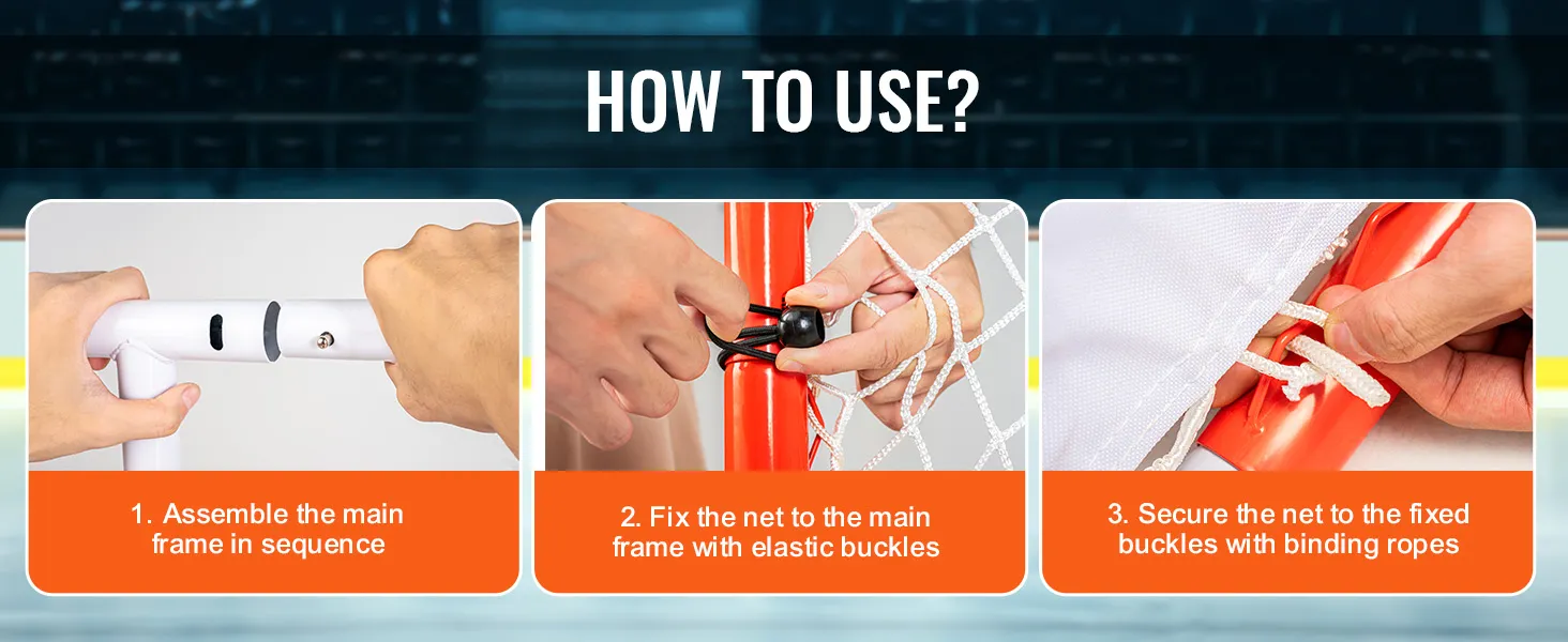 Stabiel & eenvoudig te monteren: Het stalen hockeydoel is zeer eenvoudig te monteren. Het frame wordt eenvoudig bevestigd met punaises en een paar schroeven. De achterste draadlus kan worden gecombineerd met elastische lussen om het net eenvoudig te bevestigen. Iedereen kan hem moeiteloos en zonder gereedschap in elkaar zetten, zodat jij je kunt concentreren op het spel.