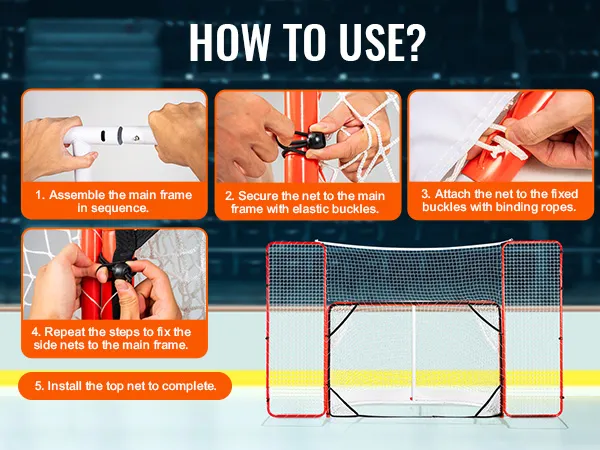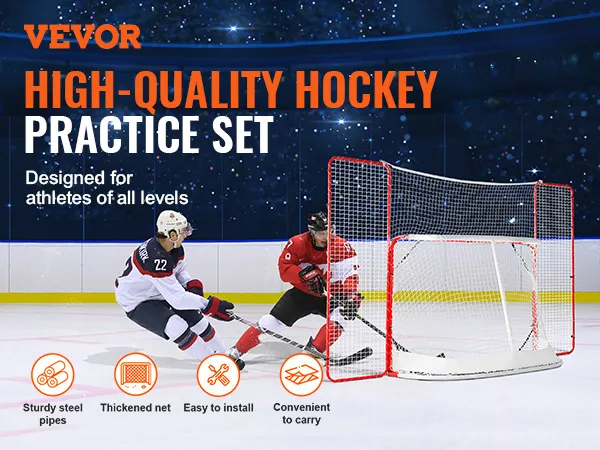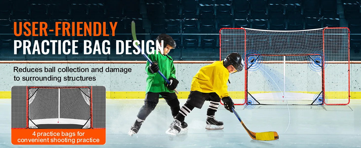 Het hockeydoel is afneembaar en daardoor praktisch voor wedstrijden. Het kan worden gebruikt in sporthallen, ijsbanen, droge ruimtes of buiten en is een ideaal cadeau voor elke hockeyfan die zijn spel wil verbeteren.