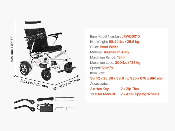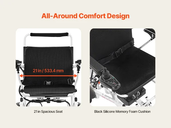Belastbaarheid tot 136 kg: De ruime zitting van 533,4 mm breed biedt comfort en stabiliteit en ondersteunt tot 136 kg. Het robuuste metalen frame zorgt voor een lange levensduur en maakt deze elektrische rolstoel ideaal voor dagelijks gebruik.