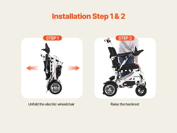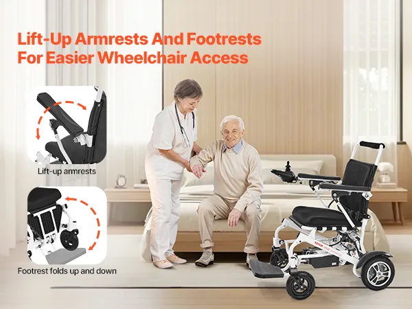 Opvouwbaar met één knop: De elektrisch opvouwbare rolstoel is eenvoudig op te vouwen met het éénknopssysteem. Compact en lichtgewicht, ideaal voor op reis, gemakkelijk te vervoeren en op te bergen – voor uitstapjes naar ziekenhuizen, luchthavens en meer.