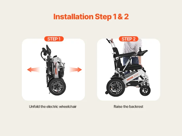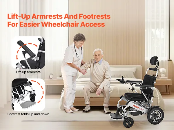 Opvouwbaar met één knop: De elektrisch opvouwbare rolstoel is eenvoudig op te vouwen met het éénknopssysteem. Compact en lichtgewicht, ideaal voor op reis, gemakkelijk te vervoeren en op te bergen – voor uitstapjes naar ziekenhuizen, luchthavens en meer.