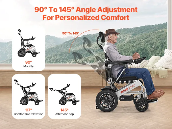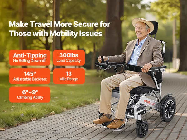 Onze elektrische rolstoel is opvouwbaar, waardoor hij gemakkelijk op te bergen en te vervoeren is. Dankzij de schokabsorberende banden en het uitstekende klimvermogen rijdt hij moeiteloos op verschillende terreinen en biedt hij een soepele rit.