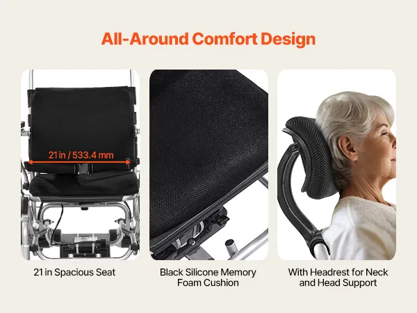 Belastbaarheid tot 136 kg: De ruime zitting van 533,4 mm breed biedt comfort en stabiliteit en ondersteunt tot 136 kg. Het robuuste metalen frame zorgt voor een lange levensduur en maakt deze elektrische rolstoel ideaal voor dagelijks gebruik.