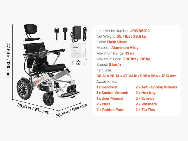 VEVOR Elektrische opvouwbare rolstoel, medische scooter tot 136 kg, elektrische rolstoel met verstelbare rugleuning, bereik van 21 km, voor senioren en gehandicapten, gemakkelijk te vervoeren