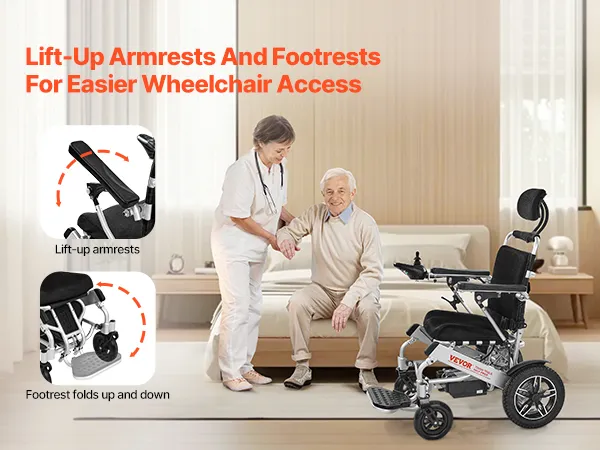 Opvouwbaar met één knop: De elektrisch opvouwbare rolstoel is eenvoudig op te vouwen met het éénknopssysteem. Compact en lichtgewicht, ideaal voor op reis, gemakkelijk te vervoeren en op te bergen – voor uitstapjes naar ziekenhuizen, luchthavens en meer.