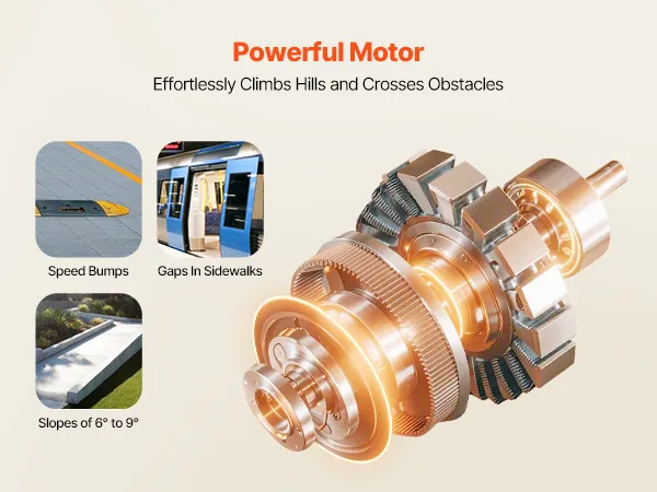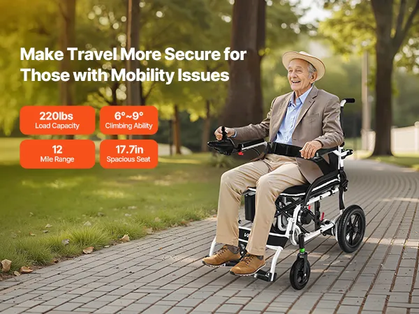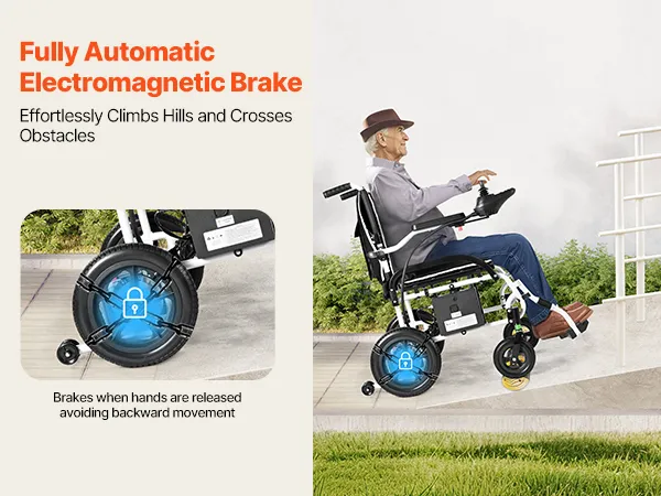 Onze elektrische rolstoel is opvouwbaar, waardoor hij gemakkelijk op te bergen en te vervoeren is. Dankzij de schokabsorberende banden en het uitstekende klimvermogen rijdt hij moeiteloos op verschillende terreinen en zorgt hij voor een soepele rit.