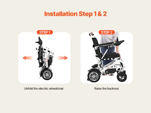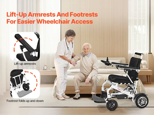 Opvouwbaar met één knop: De elektrisch opvouwbare rolstoel is eenvoudig op te vouwen met het éénknopssysteem. Compact en lichtgewicht, ideaal voor op reis, gemakkelijk te vervoeren en op te bergen – voor uitstapjes naar ziekenhuizen, luchthavens en meer.