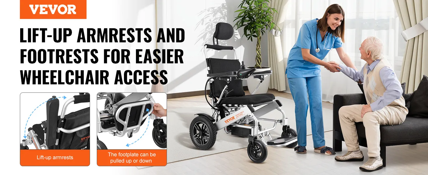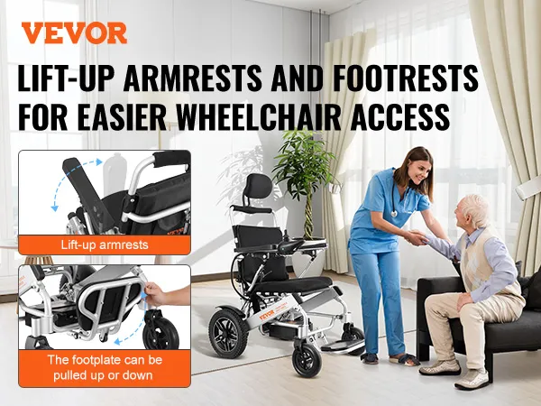 De armleuningen kunnen eenvoudig omhoog worden gezet, waardoor het opstaan en gaan zitten gemakkelijker wordt. De voetsteunen kunnen naar de zijkant worden geopend, waardoor de toegang gemakkelijker wordt. Dit ontwerp is afgestemd op de behoeften van senioren en maakt het dagelijks leven comfortabeler.