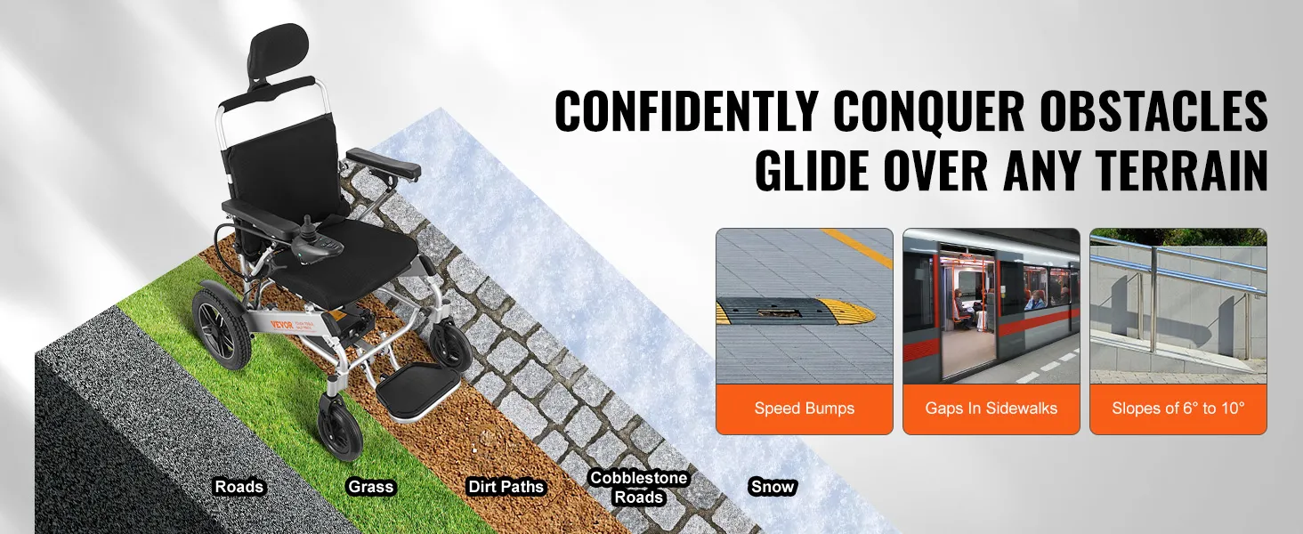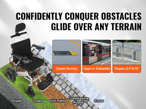 Ontworpen om verschillende obstakels en oppervlakken aan te pakken, zodat u soepel kunt rijden op wegen, gras, onverharde wegen, kasseien en zelfs sneeuw. Of u nu verkeersdrempels, gaten in de metro of hellingen van 6° tot 10° moet overwinnen.