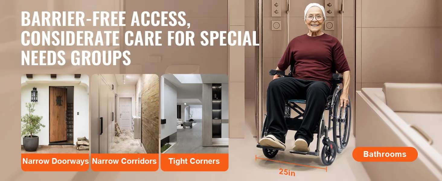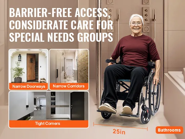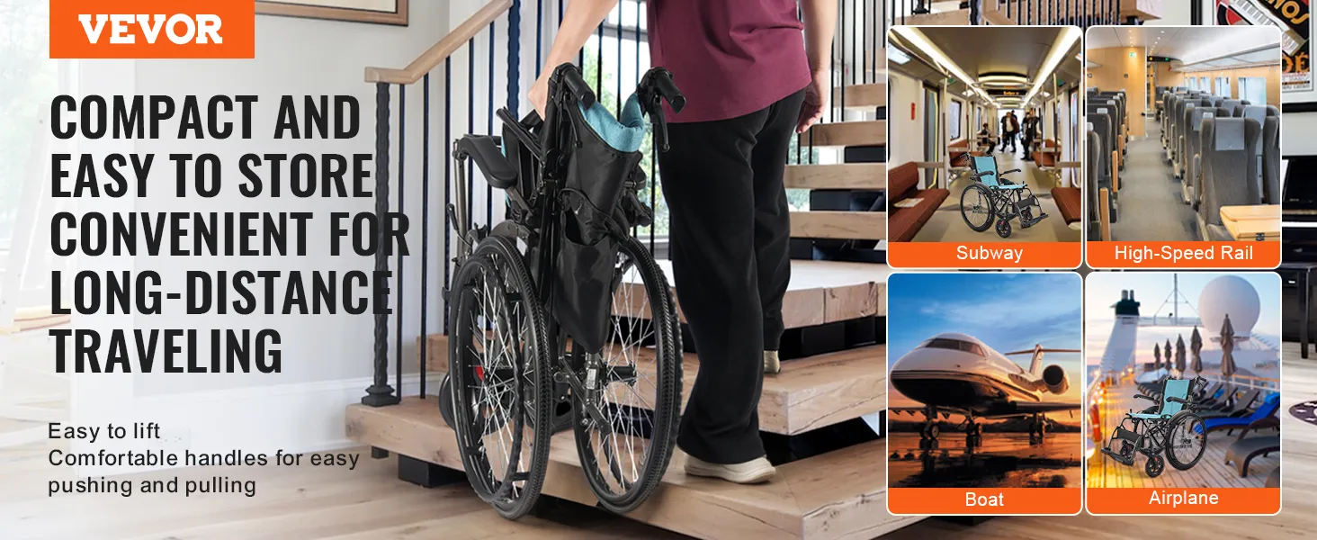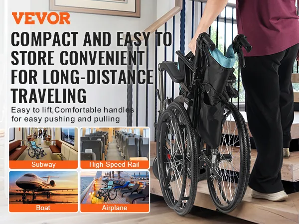 Deze rolstoel is compact en gemakkelijk op te bergen en kan moeiteloos worden opgevouwen voor gemakkelijk reizen en woon-werkverkeer. Dankzij de comfortabele handgrepen is hij veelzijdig inzetbaar in metro's, hogesnelheidstreinen, boten en vliegtuigen, waardoor uw reiscomfort toeneemt.