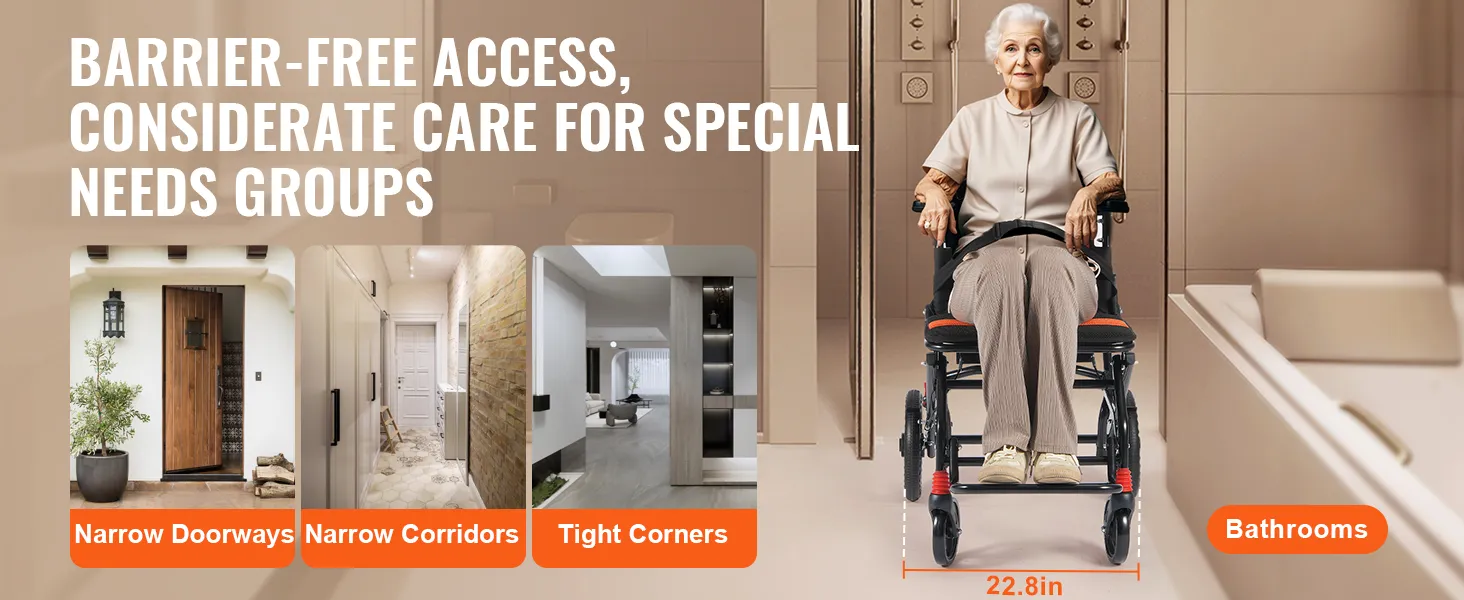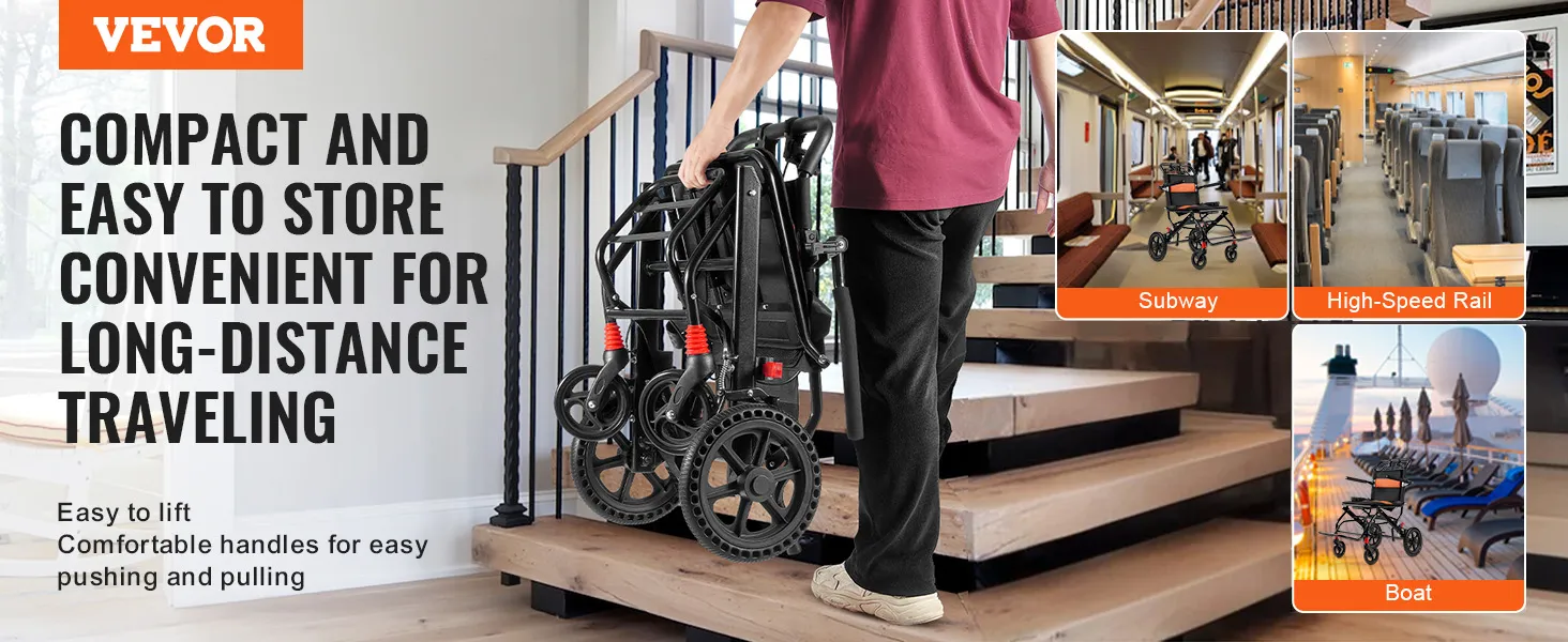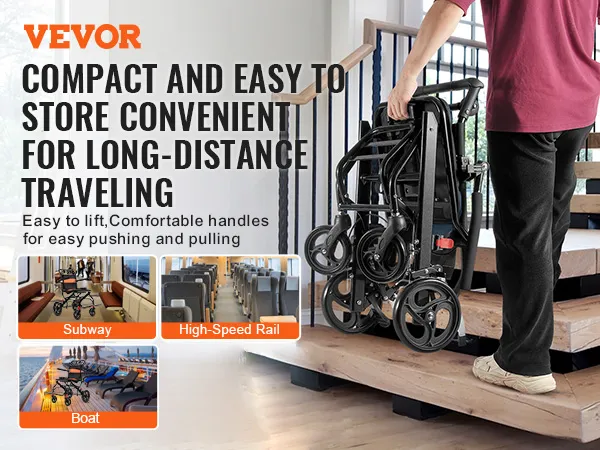 Deze rolstoel is compact en gemakkelijk op te bergen en kan moeiteloos worden opgevouwen voor gemakkelijk reizen en woon-werkverkeer. Dankzij de comfortabele handgrepen is hij veelzijdig inzetbaar in metro's, hogesnelheidstreinen, boten en vliegtuigen, waardoor uw reiscomfort toeneemt.