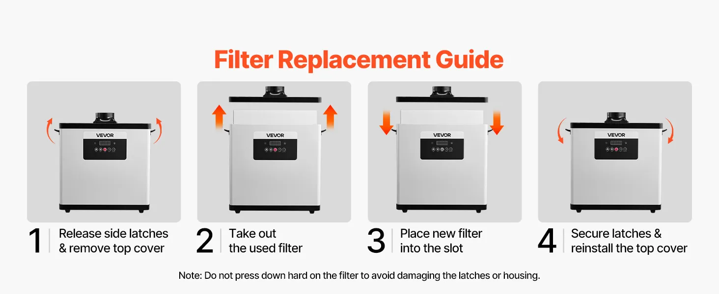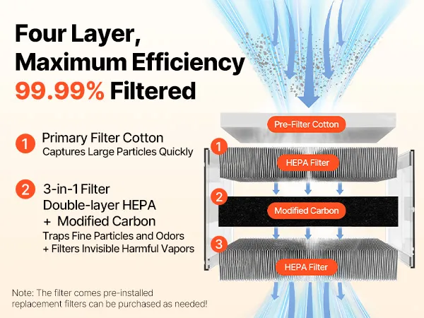 Zeer efficiënte filtratie: De VEVOR soldeerdampafzuiger is voorzien van een verbeterd 4-laags filtratiesysteem dat primair filterwol combineert met een 3-in-1 filter (HEPA – Gemodificeerde actieve kool – HEPA) om effectief dampen, geuren en onzichtbare schadelijke gassen af te vangen.