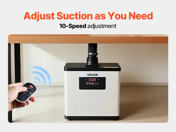 10 snelheidsinstellingen met afstandsbediening: Dankzij 10 instelbare standen kunt u de afzuigkracht eenvoudig regelen met de afstandsbediening. Pas de afzuigkracht aan verschillende soldeerklussen en rookniveaus aan, waardoor u uw werkefficiëntie aanzienlijk verhoogt.
