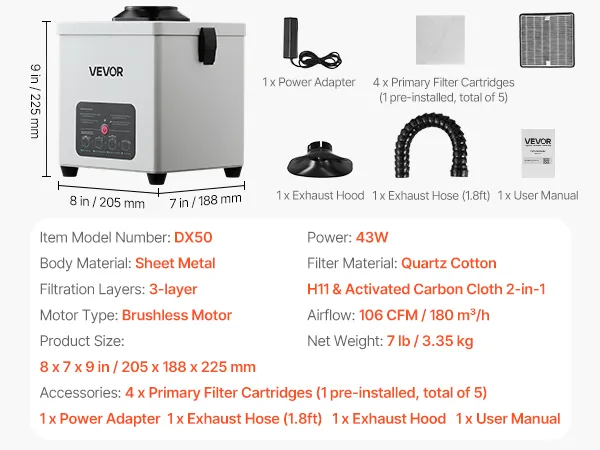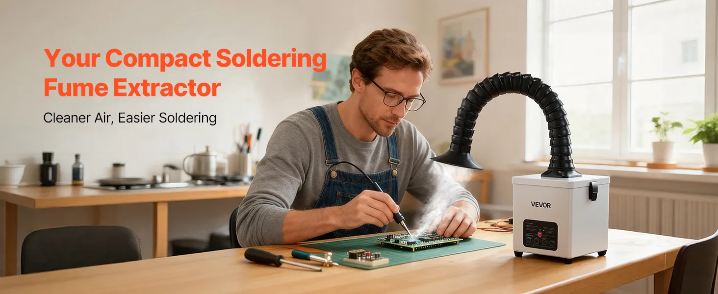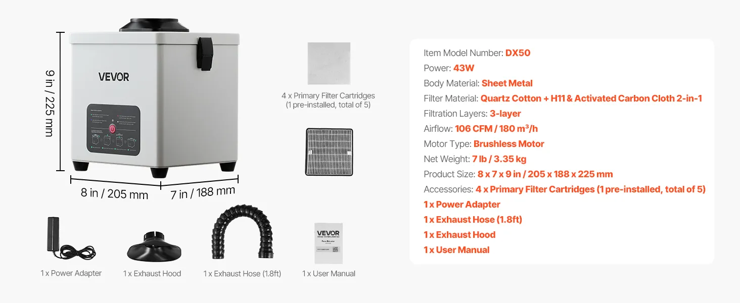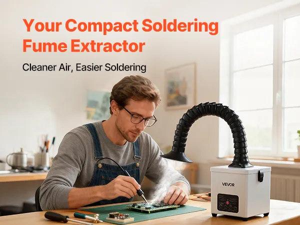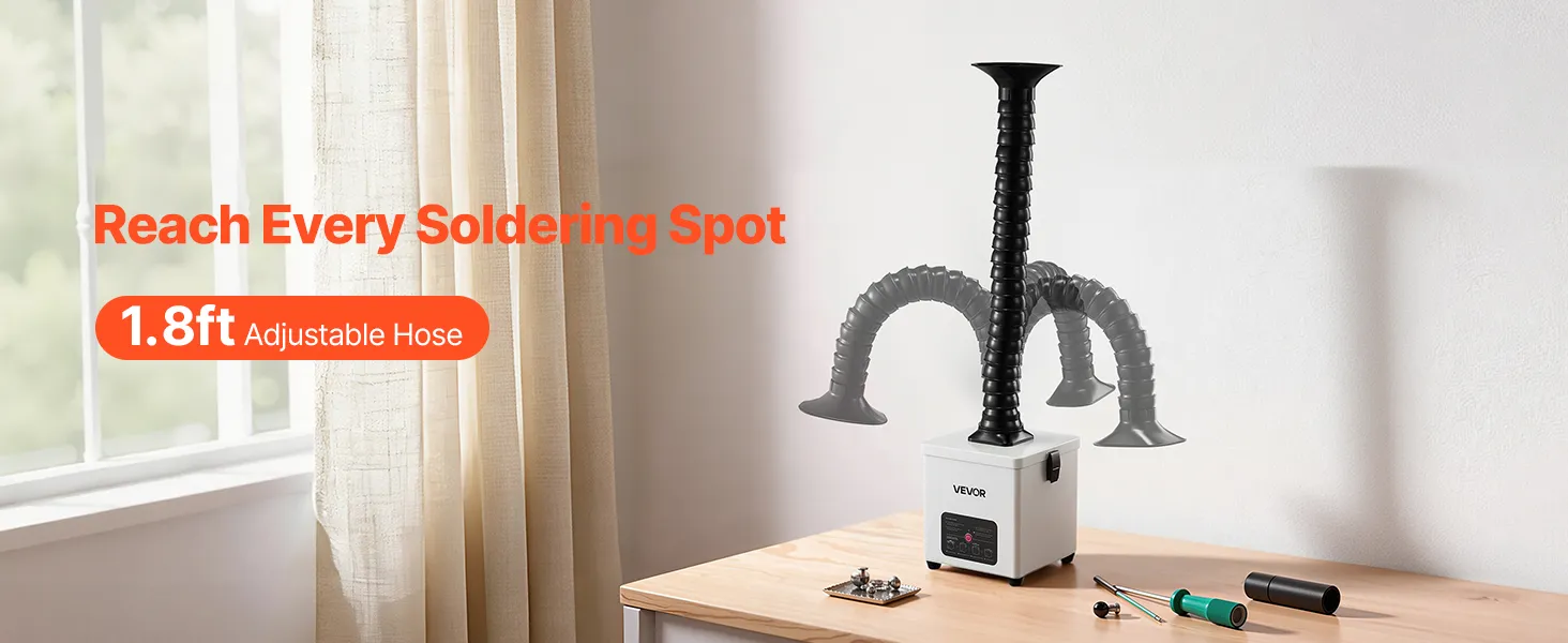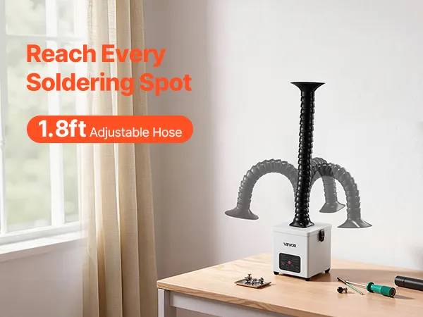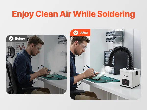 3-traps filtersysteem: Uitgerust met een drielaags filtersysteem – primair kwarts-katoenfilter + H11-filter & actief koolstoffilter. De 2-in-1 VEVOR soldeerrookafzuiger vangt efficiënt deeltjes en soldeerrook op, waardoor de lucht schoner blijft (filter is voorgeïnstalleerd; vervangingsfilters kunnen indien nodig worden aangeschaft).