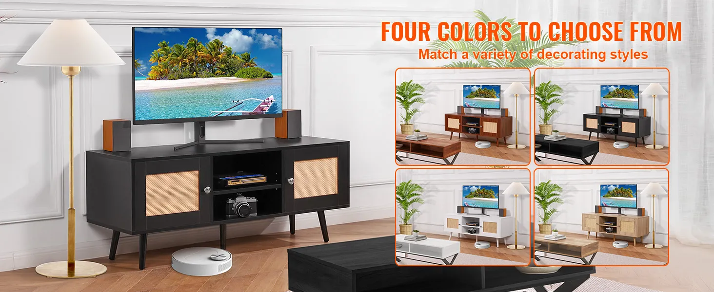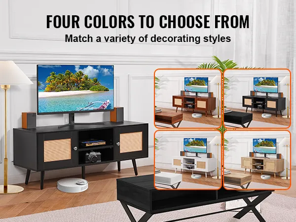 Available in four colors: white, black, walnut, and oak. Our rattan TV cabinet ensures a perfect match for your home décor and enhances your living room.