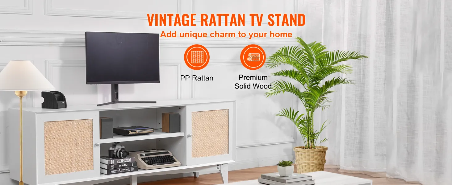 Timeless Vintage Aesthetics: This rattan TV stand combines bohemian style with modern aesthetics for a unique, fashionable look. The cabinet doors are made of hand-woven rattan, which is made by skilled craftsmen. The solid wood parts are crafted with an aesthetically pleasing bevel cut technique. We provide a step-by-step guide with all fittings and parts marked with numbers or letters so you can quickly find and assemble them.