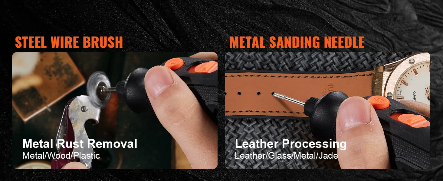 Veelzijdige roterende gereedschapsset: onze roterende gereedschapsset is ideaal voor frezen, graveren, schuren, snijden, vormen, schuren, polijsten, reinigen, boren, enz. Maak je klaar om je aan te passen aan verschillende oppervlakken met de verschillende meegeleverde accessoires om je te helpen Ambachten kunnen bereiken verschillende effecten. Ben je klaar om je creativiteit op de proef te stellen?