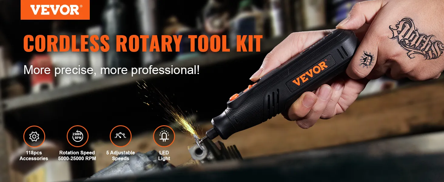 VEVOR Snoerloze Rotary Tool Multitool 1 uur snel opladen Rotary Tool 4V Set met 118 accessoires Variabele snelheid 5000-25000RPM voor snijden, graveren, slijpen en polijsten