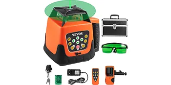De roterende laserwaterpas zendt goed zichtbare groene stralen uit; biedt 360-graden dekking. Het scant ook met variabele rotatiesnelheden en scanhoeken om te passen bij verschillende lichtomstandigheden.