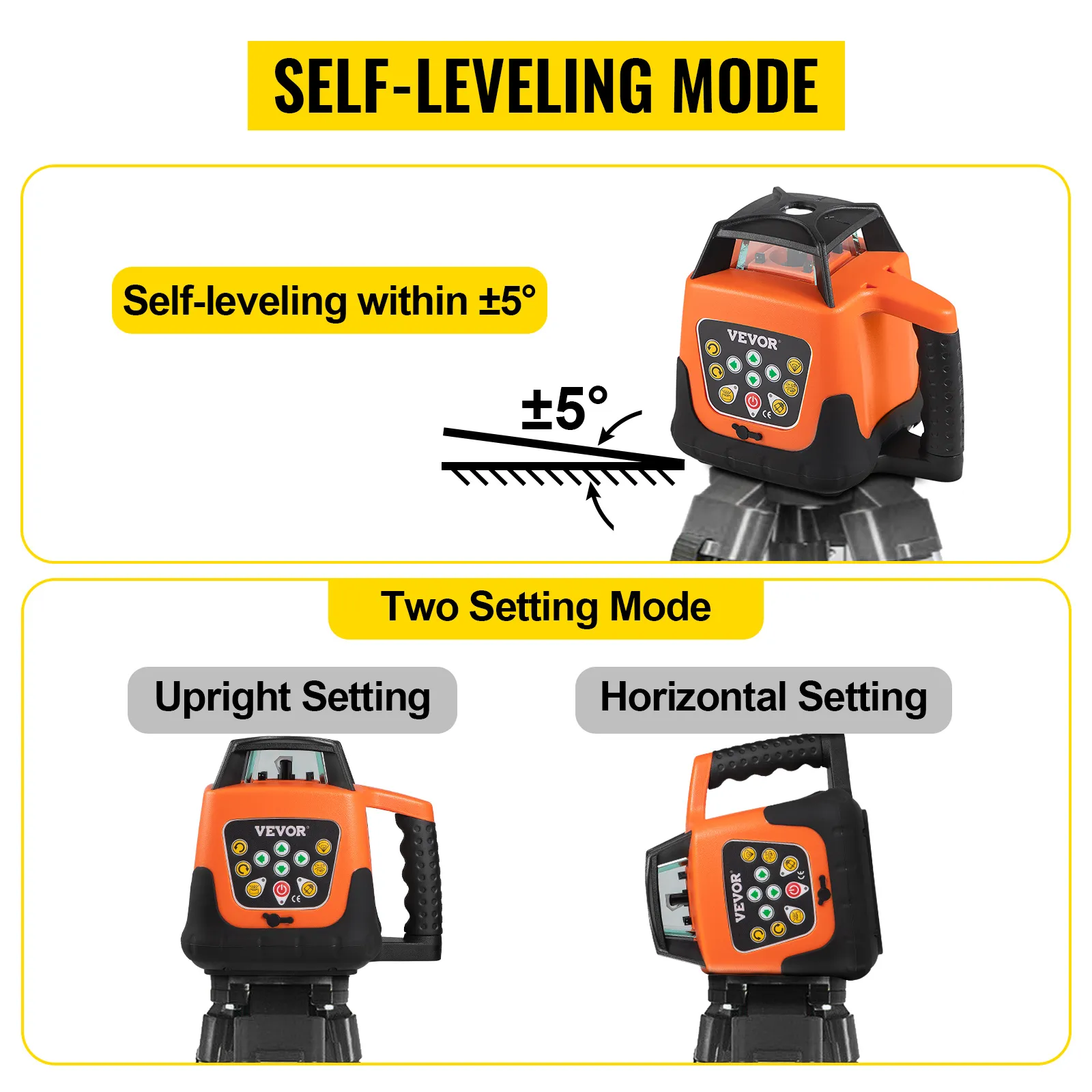 Het laserniveau wordt automatisch geregeld om uit te lijnen en aan te passen binnen ±5 graden, waardoor een nauwkeurigere lijn wordt geproduceerd. Bovendien kan deze zelfnivellerende laserwaterpas verticaal of horizontaal worden geïnstalleerd.