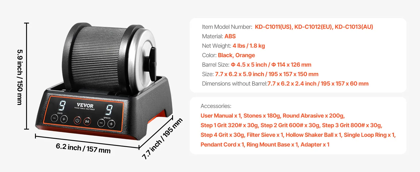 Upgraded 9-Speed Control: This rock polishing kit features an easy-to-use operating panel, allowing you to choose from 1-9 speeds and 1-9 day timer. Whether you're an 8-year-old beginner or a rock collection enthusiast, you'll enjoy effortlessly polishing gemstones to create crafts comparable to those of a master.