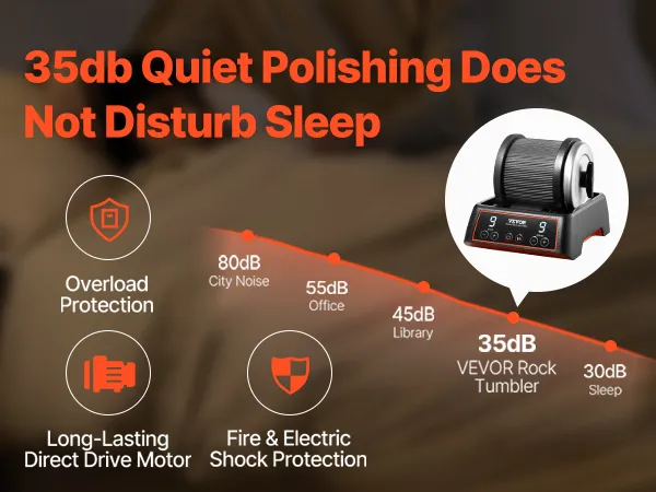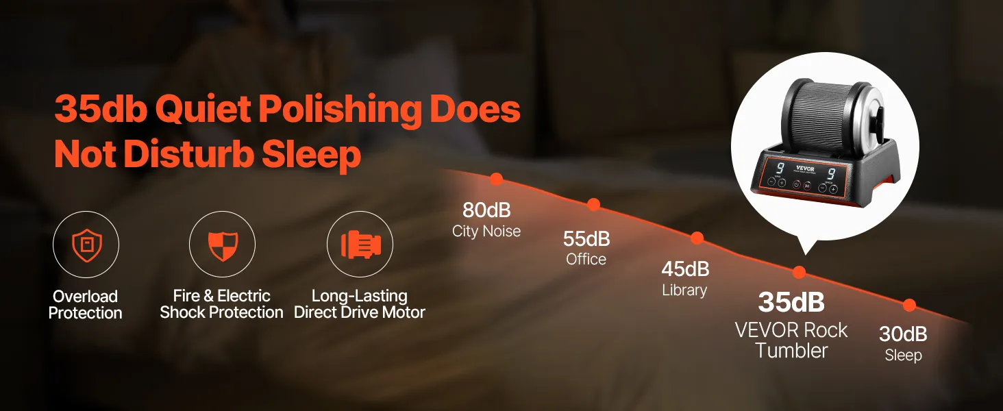 Belt-Free Direct-Drive Motor: No more worries about broken belts! The direct-drive motor delivers efficient power with 35dB silent operation. The rock tumbler kit runs cool even after extended use, ensuring a longer lifespan for endless rock-tumbling fun.